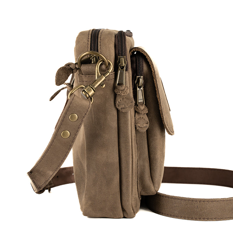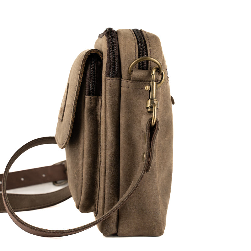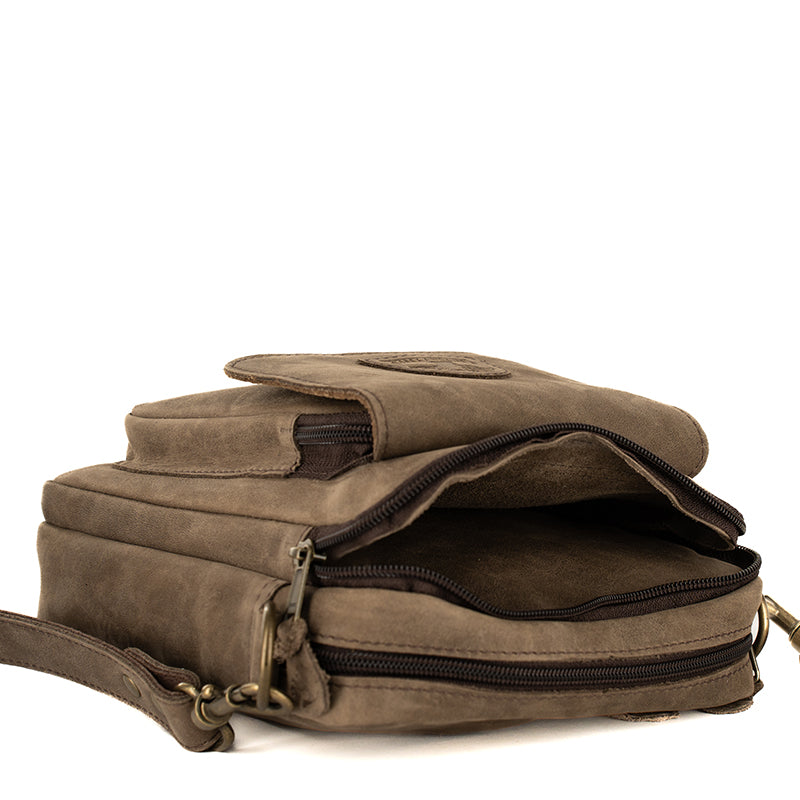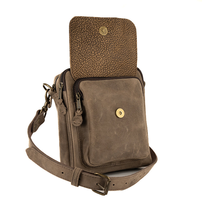Crafted from durable floater leather, the Billy Bag is built to last, offering resilience, practicality and sleekness. It features a zippered exterior pocket with a stud closure, two main zipped compartments for your essentials, and an additional zippered compartment on the back for extra storage. The adjustable, removable leather strap adds flexibility for carrying comfort, making it as practical as it is stylish.