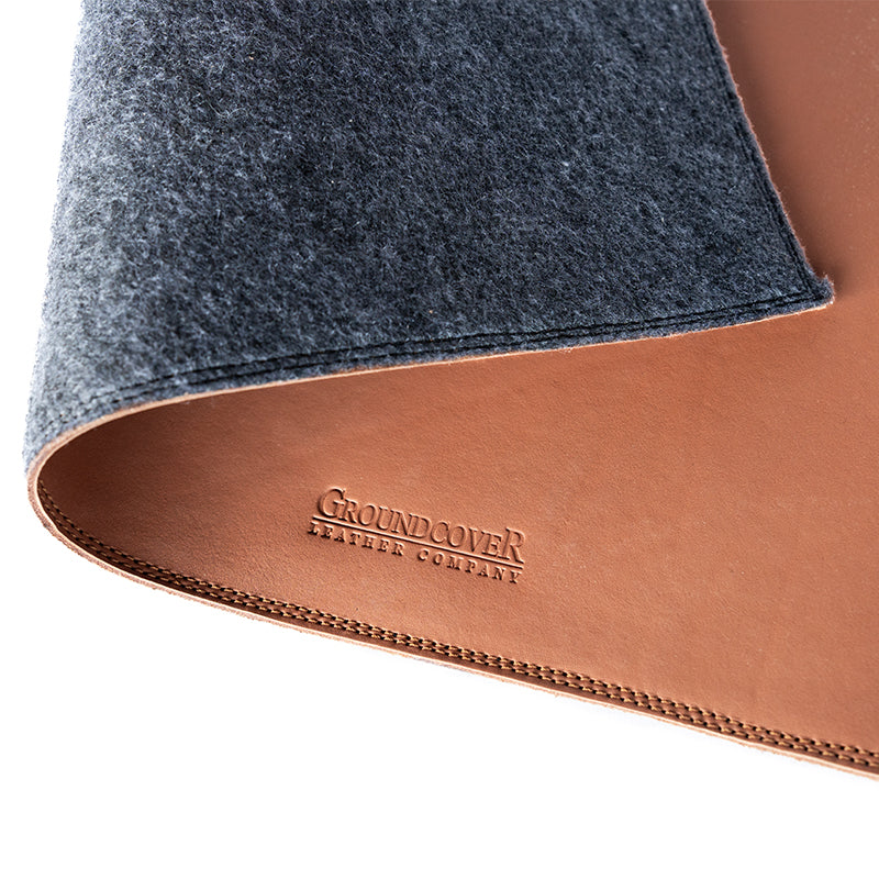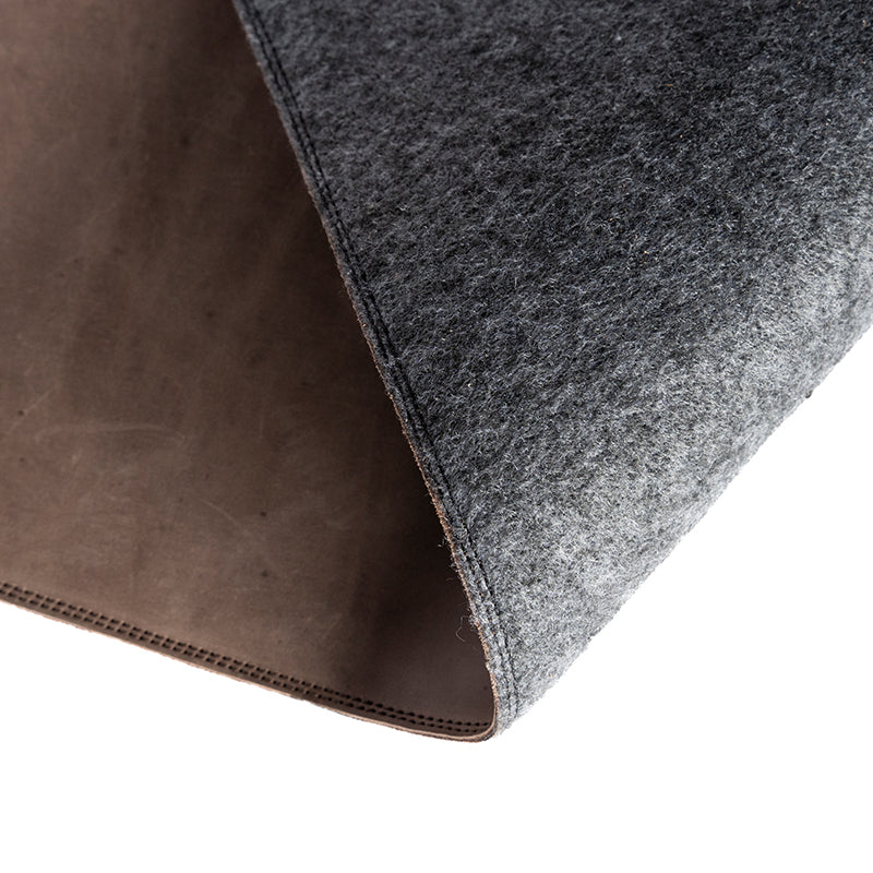 Bring a sense of sophistication to your workspace with our Full-Grain Leather Desk Pad. Expertly crafted from premium full-grain leather, this desk accessory blends refined style with practical functionality. Its sleek design not only enhances your desk's aesthetic but also protects its surface. The leather is meticulously stitched and bonded onto a non-slip felt backing, providing cushioning and added durability.