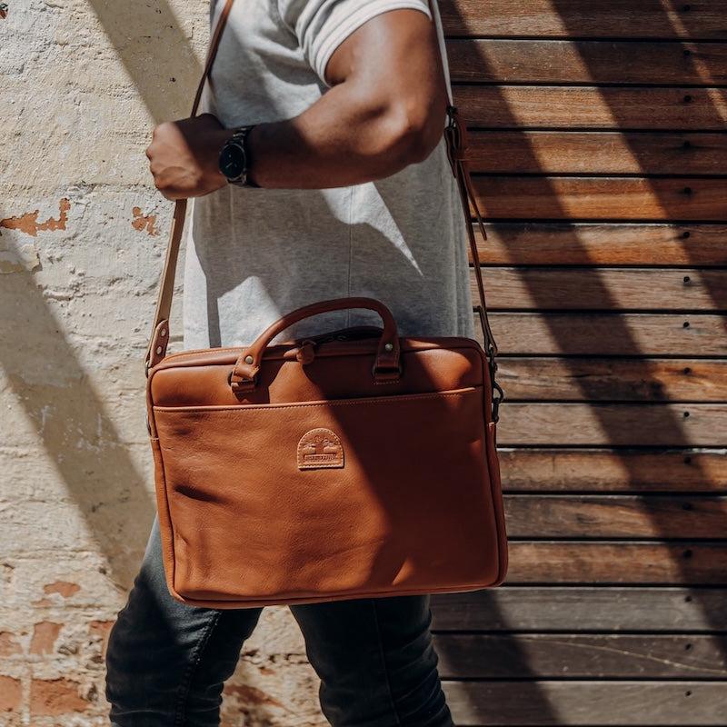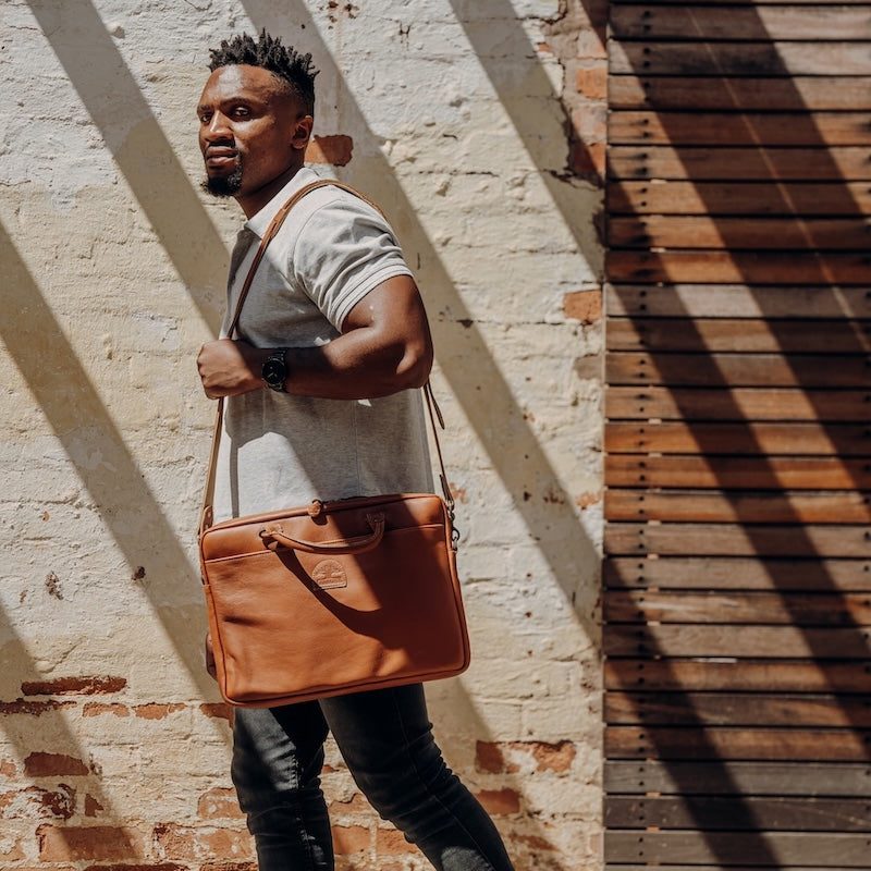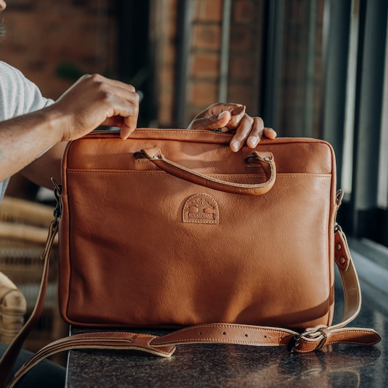 One of our most popular bags – a classic yet and functional item that snuggly fits a 15″ laptop. Arrive at the office exuding authenticity and style. Made with soft floater leather (characterized by its durability to wear and tear), with an outer pocket and an inner material lining. The strap is a removable strap should you want to use this as more of a briefcase-style bag on different days.