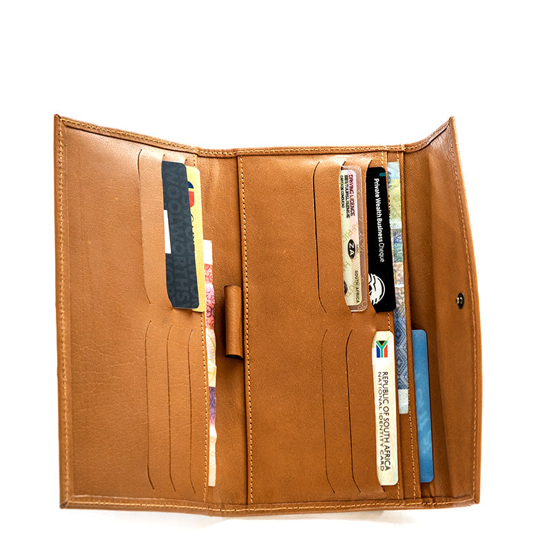 Triple Compartment Purse with zipped coin pocket, twelve card slots and a pen holder