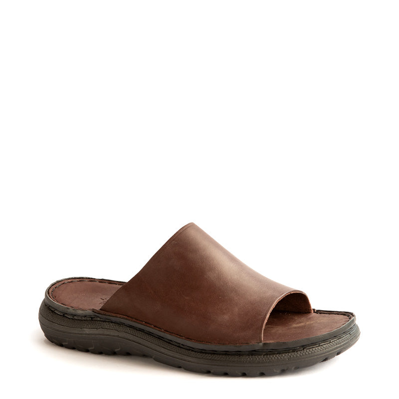 Comfort slip-on sandal: hand-laced, foam-padded leather insole