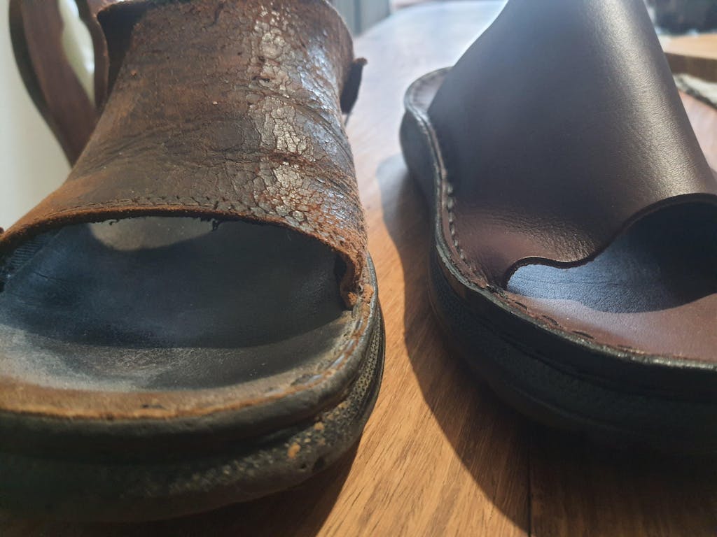 Easy-going slip-on sandal designed for comfort in a casual environment. This sandal is special as it leaves our factory to be hand-laced by the gifted mothers in our community. Built for lasting wear, the construction involves a soft foam-padded leather insole, built onto a PU unit sole. The upper is cut from a single piece of soft veg-tanned leather to ensure maximum comfort.