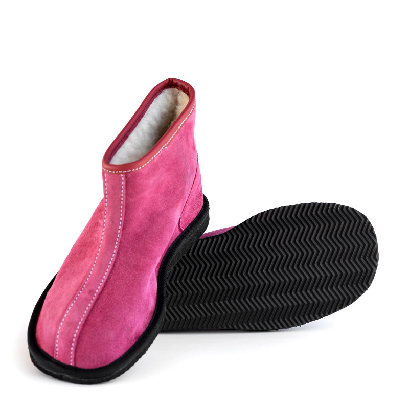 Love my wool ankle boot, warm and comfortable. The sole is perfect for outdoors and tiled floors. I ordered a size up from my usual size, so the boots are quite big. Won't do this next time. Love the colour- nice bright pink!