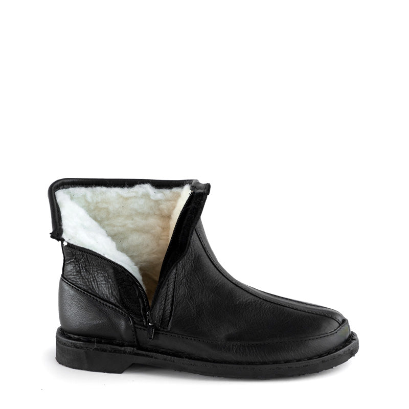 Looking for that winter warmth while also trying to appear contemporary? Our all-purpose over-ankle boot is for you. The soft leather upper is designed as a modern boot; with a side zip, velcro to close and a durable rubber sole, this boot gives off a modern and chic look. However, lining the upper and leather insole is genuine sheepskin wool which has been reconstituted onto a backer to keep your feet feeling cozy. You will feel like you are at home in your slippers, while exuding class with these stylish boots.
